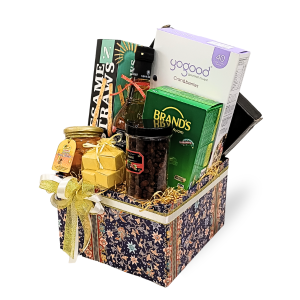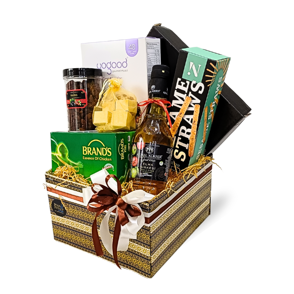 A sweet healthy way to convey your kind sentiments. Includes Yogood Chocolate & Nut Crunchy Muesli 350g, Ross Cottage Organic Raisins 288g, Apple Cider Vinegar 500g, Pure Natural Honey 500g, Black Sesame Oat Sticks 90g, 6 bottles of Brands Essence of Chicken 42cl and Puerh Tea Toucha 80g. Ideal gift for those who fell under the weather.