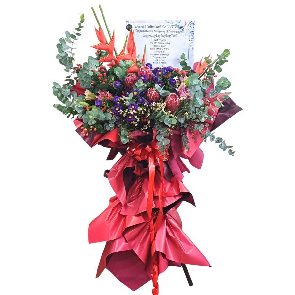 Congratulatory Flower Stand is ideal for Grand Openings of new business ventures, to Congratulate and Celebrate successes.A Free Complimentary Message Card will be provided where we would convey your good gestures in writing to the recipients. Kindly ensure the message are clearly ariticulated with the sender's information. Alternatively, you may also select from our range of Personalized Designer Cards to convey your kind sentiments.