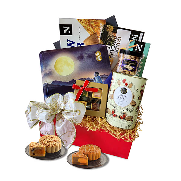 Royce® (Hokkaido) Aroma Chocolates - Madagascar, Ecuador, Matcha and Criollo Cacao Milk Pralines 12pcs, Golden Pineapple Tart 200g, Bangkit Cookies 150g, Ross Cottage Premium Latte Coffee 320g, Chocolate Wafer 150g, Ross Cottage Pistachio Nuts 150g and a box of 友爱月饼 Yu Ai Mooncake in a box of 4 - our all time favorite, Tiramisu Walnut Mooncake, Pure Lotus 1 Yolk, Red Bean Special and Durian Mung Bean Special. Note that Yu Ai traditional Mooncakes are halal certified.